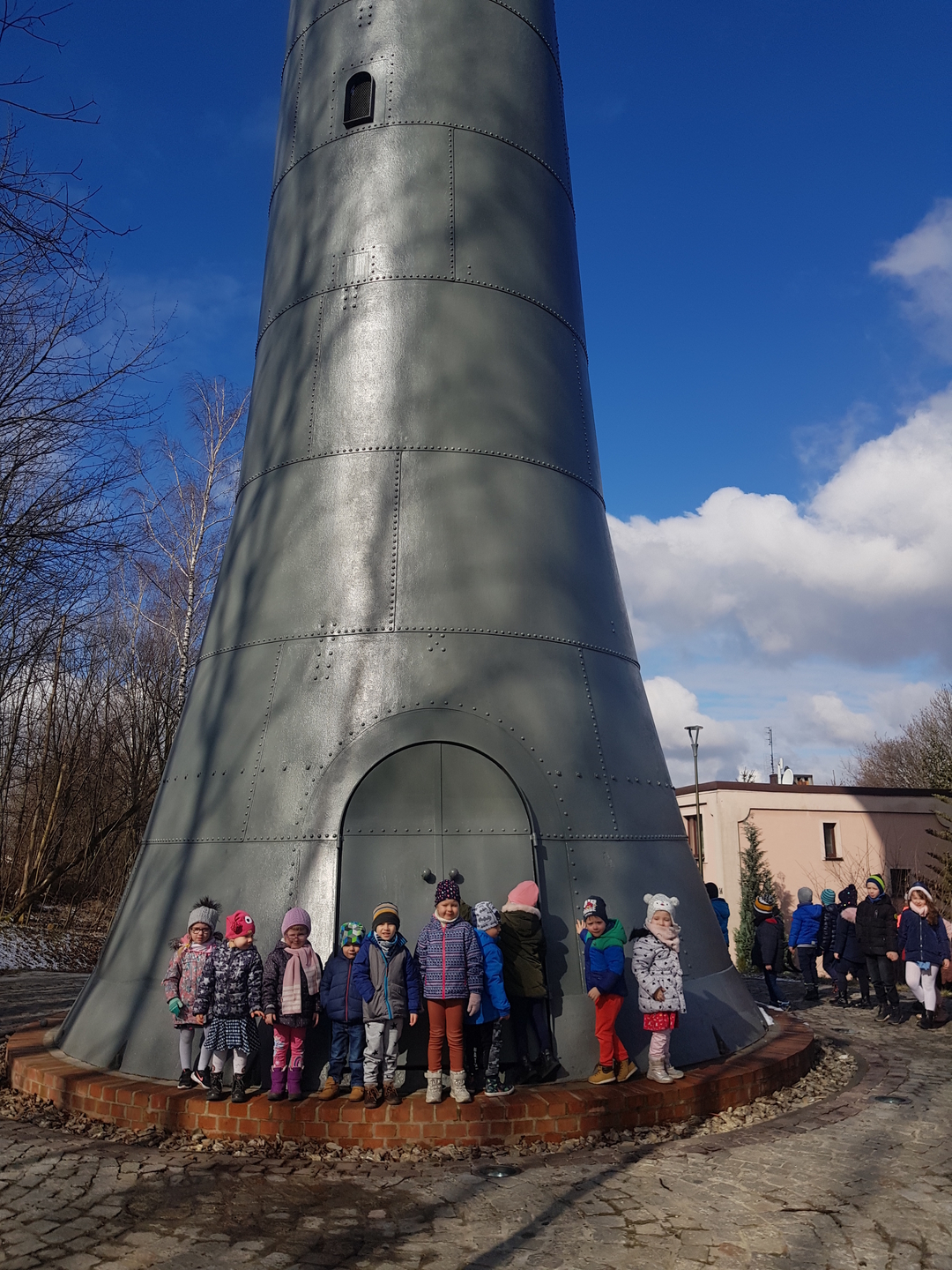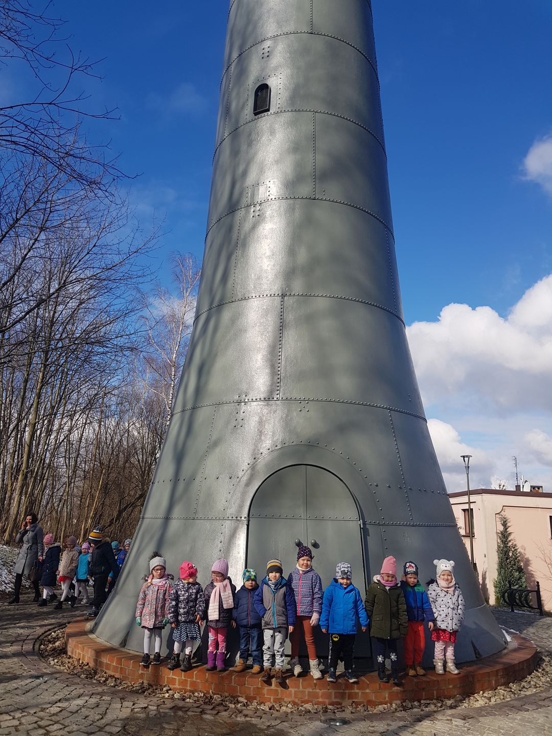 Pamiątkowe zdjęcia przy wieży ciśnień.
