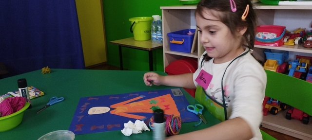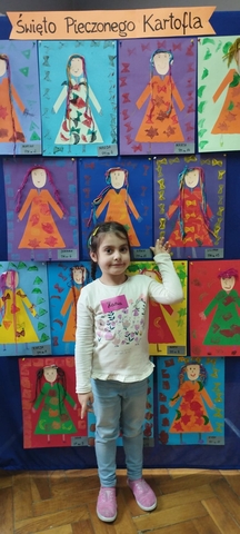Wykonała piękną pracę plastyczną z użyciem oczywiście kartofla w roli stempelka.